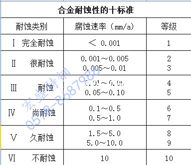 下圖列出了不銹鋼管耐全面腐蝕時的十級標準。選擇哪一級來滿足設備、構件耐腐蝕的要求,除壽命長短外,設備、構件的特點(厚、薄、大或。┖蛯λa產品的質量(雜質、純度、顏色等)要求也在考慮內。例如,對使用過程中,要求保持設備、構件光潔鏡面或尺寸精密的以及對產品的雜質、純度、顏色有特殊要求的用途,一般選擇1~3級標準;而對要求不高,檢修方便或壽命要求不是很長的設備、構件,則可選用4~6級標準。但是,在正常情況,大于6級標準是不選用的。